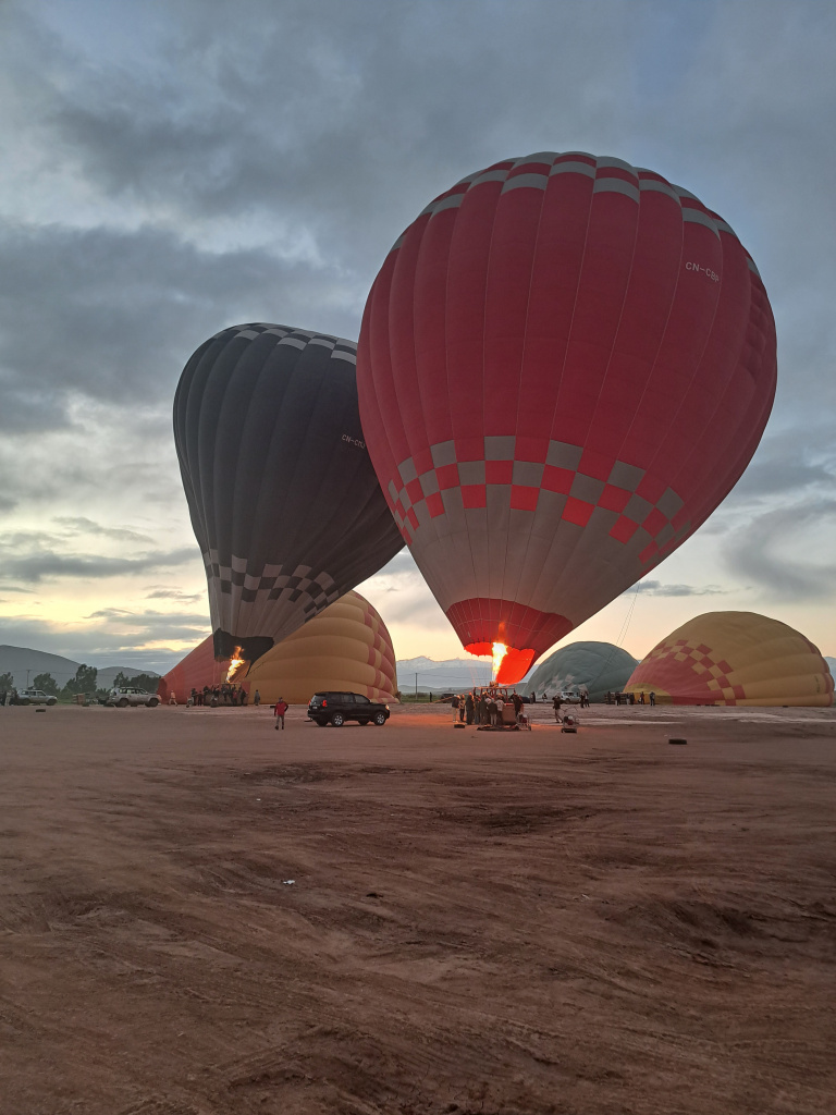 Nach einer kurzen Nacht klingelte der Wecker um 6 Uhr: Eine Heißluftballonfahrt stand an! Für mich war es das erste Mal, und ich gebe zu, ich hatte ein mulmiges Gefühl. In der Dunkelheit fuhren wir etwa 40 Minuten zum Startplatz. Als die Sonne langsam hinter dem Gebirge aufging und die ersten Ballons in den Himmel schwebten, wich die Aufregung purer Begeisterung.