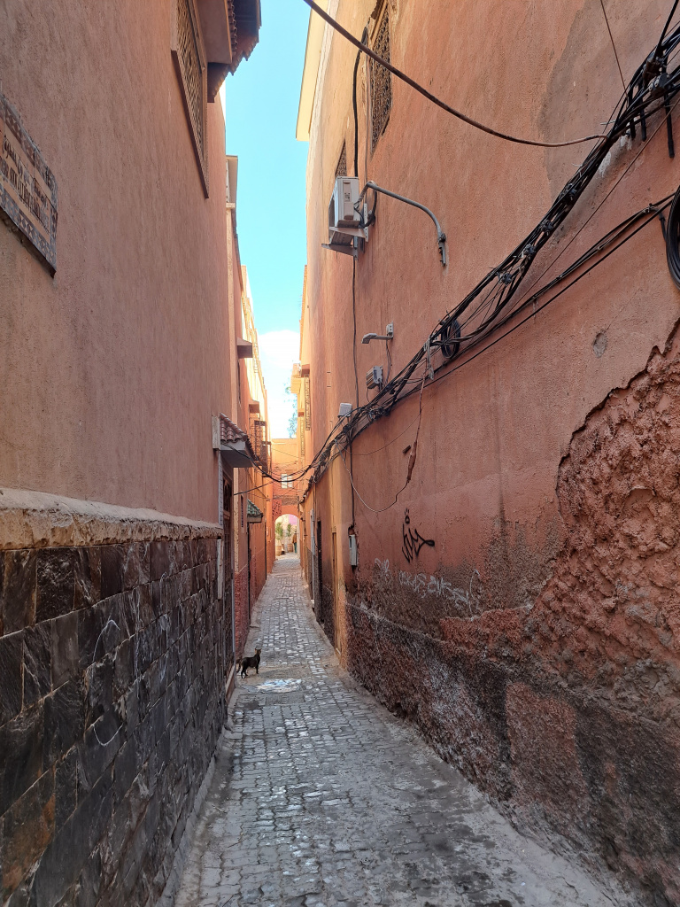 Nach einem wohlverdienten Frühstück im Quattro tauchten wir mittags in die schmalen Gassen der Medina ein. Ein besonderes Highlight erwartete uns hier: Wir liefen durch eine unscheinbare Gasse, vorbei an Bauschutt und alten Häusern, und standen plötzlich im Les Jardins Garden du Lotus. Eine absolute Wow-Oase! Ich hätte nie erwartet, an diesem Ort eine so hochwertige und wunderschöne Location für ein Mittagessen im Schatten zu finden. Anschließend schlenderten wir ausgiebig durch den Souk.